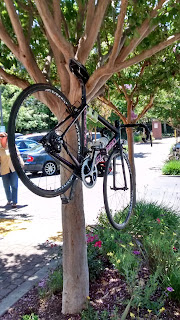 Our return had lots of down hill, which was good for me because I was getting quite tired, but it also went up, too. We came to a steep fire road with a fair amount of loose rock and soil. When we went down it earlier in the day, I knew it would be very hard for me to go up it. I was right. I didn't have enough power in my tired legs to do it and had to walk most of the way, pushing my bike. When I got closer to the others